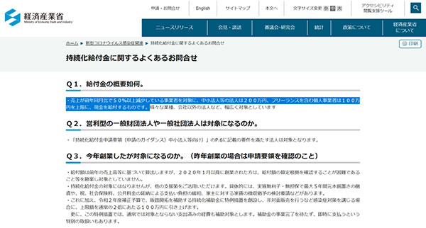 關(guān)于「持続化給付金」的申請相關(guān)問題咨詢,有意向申請的朋友請在日本經(jīng)濟產(chǎn)業(yè)省官網(wǎng)查詢。