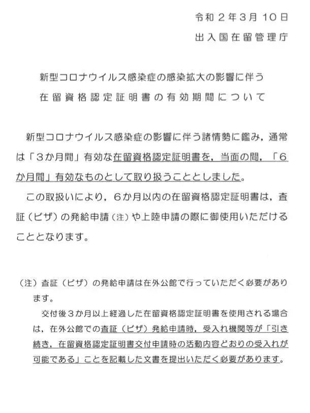 昨天,日本入國管理局更新了一系列面向外國人的簽證政策,這次的新政則是只要是2019年10月1日到2021年1月29日之間發(fā)行的在留資格認(rèn)定書,有效期延至入國限制解除的6個月內(nèi)或2021年4月30日。