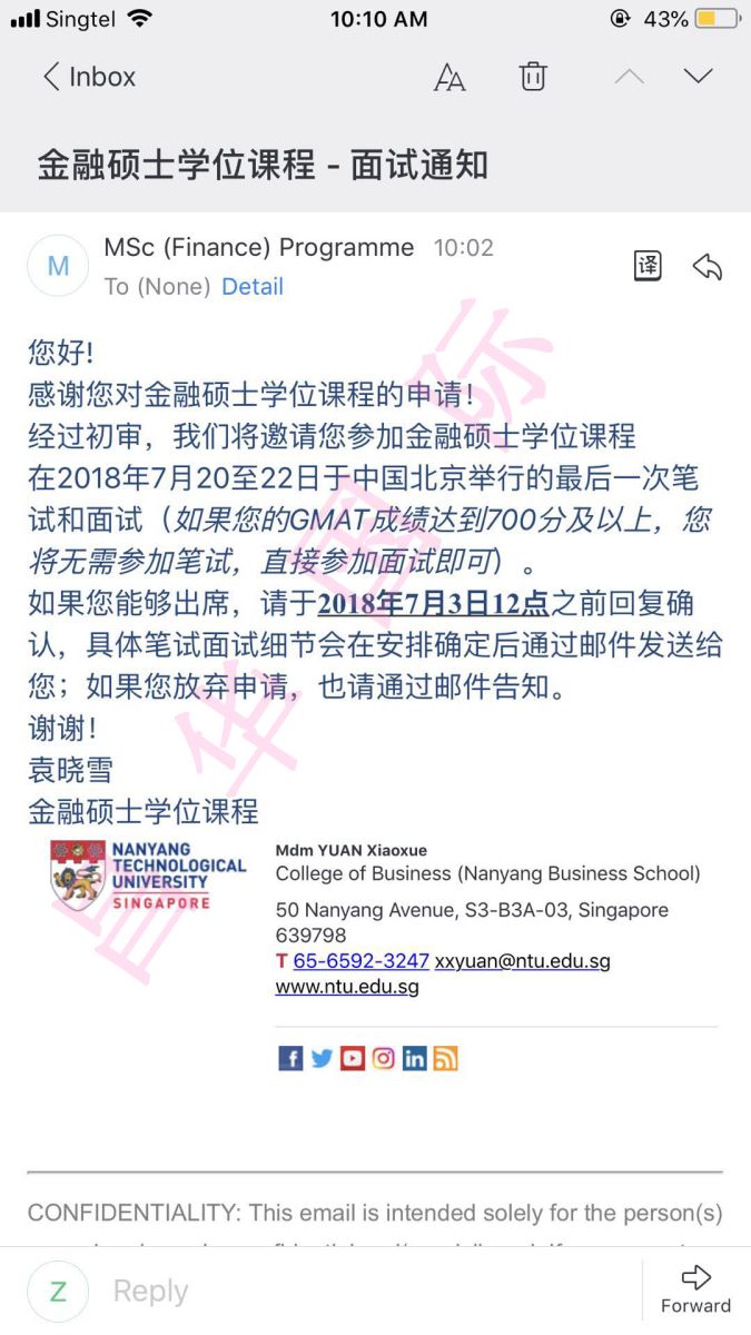 畢業(yè)于中國海洋大學(xué)的Z同學(xué),GPA:3.71,在青島某機(jī)構(gòu)申請新加坡南洋理工大學(xué)碩士,臨近開學(xué)缺遲遲未通過。經(jīng)朋友介紹來到了昌華國際,我們的老師綜合分析學(xué)生的實(shí)際情況,在時(shí)間緊任務(wù)重的情況下立即開展資料的制作與背景提升。成功申請到新加坡南洋理工大學(xué)的兩個(gè)碩士項(xiàng)目。