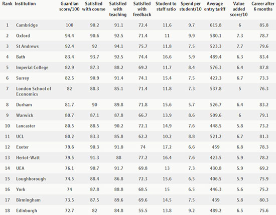 2015衛(wèi)報(bào)最新英國(guó)大學(xué)排名